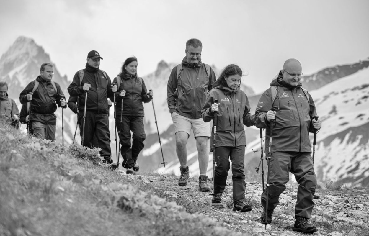 An environmental themed weekend with an orientation challenge and hike. The clients stayed at a 5 star hotel, they had an afternoon meeting with a presentation from a specialist speaker about the UTMB event and its impact on the Chamonix Valley environment. Then they had a ecology themed hike with a geologist and glaciologue expert showing the consequences of global warming in the Alps.